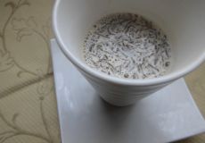 もずくときな粉を温かい牛乳でマキアート風に・・・牛乳ともず...