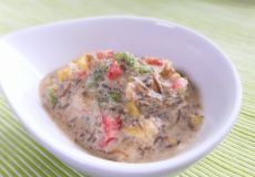 細かく刻んだ”もずく”と豚ひき肉・パプリカ・大葉をカラフル...
